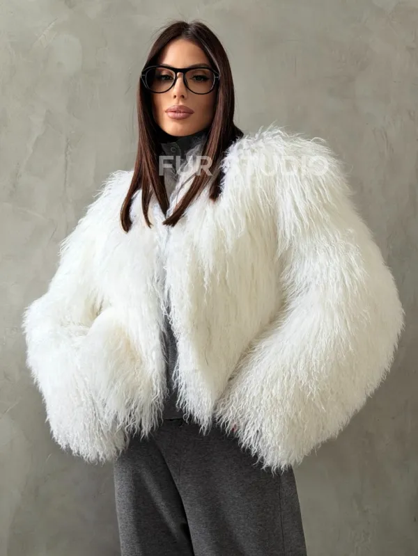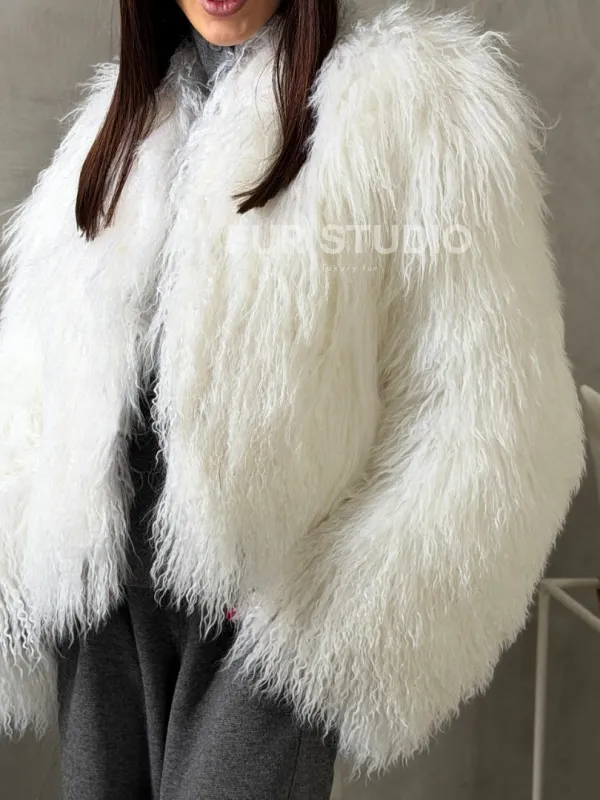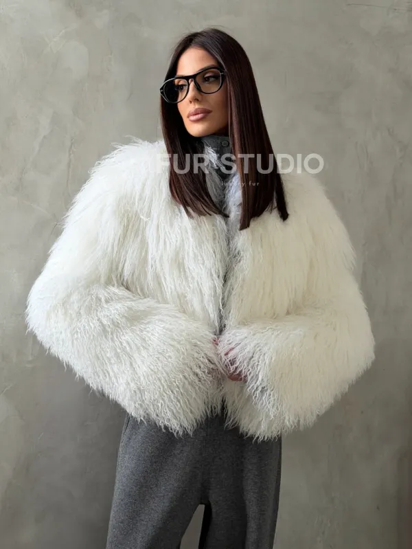 Белая кроп-шуба из меха ламы доступна для покупки в нашем шоуруме Furs Studio в . У нас так же есть доставка во все города России. Добавьте немного роскоши в свой гардероб с этой шубой, которая будет служить вам многие годы.