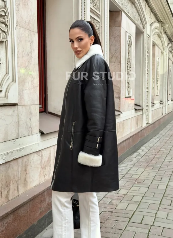 Дубленка авиатор длинная на белой овчине доступна для покупки в нашем шоуруме Furs Studio в , а также предлагается удобная доставка во все города России. Обогатите свой гардероб этой дубленкой, которая прослужит вам многие годы, добавив немного роскоши в ваш повседневный образ.