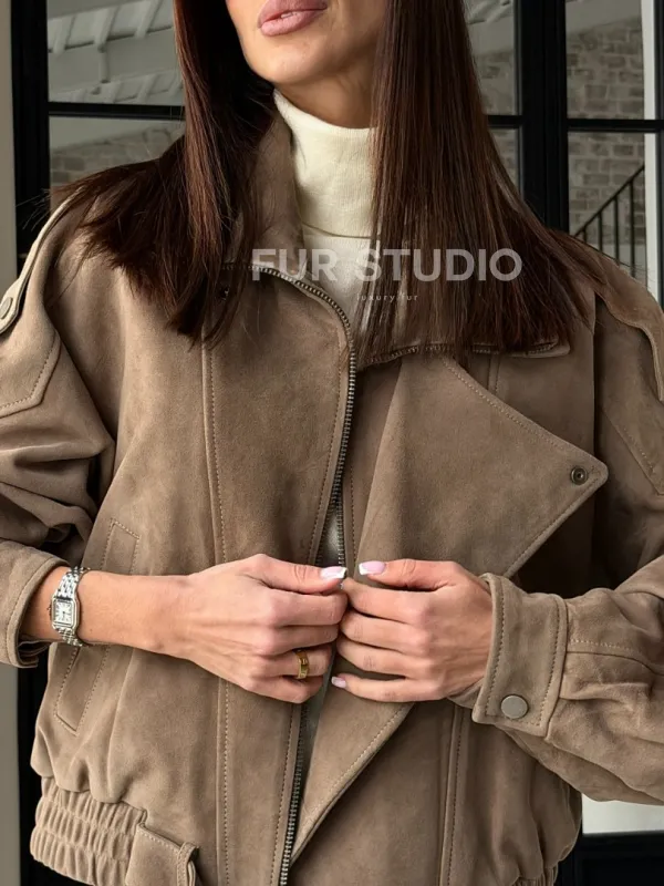 Куртка - бомбер весенняя оверсайз доступна для покупки в нашем шоуруме Furs Studio в , где также предоставляется удобная доставка во все города России.