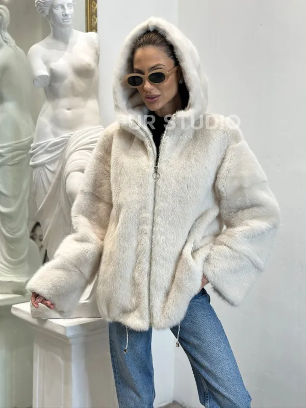Норковая куртка с капюшоном - цвет ваниль 100797