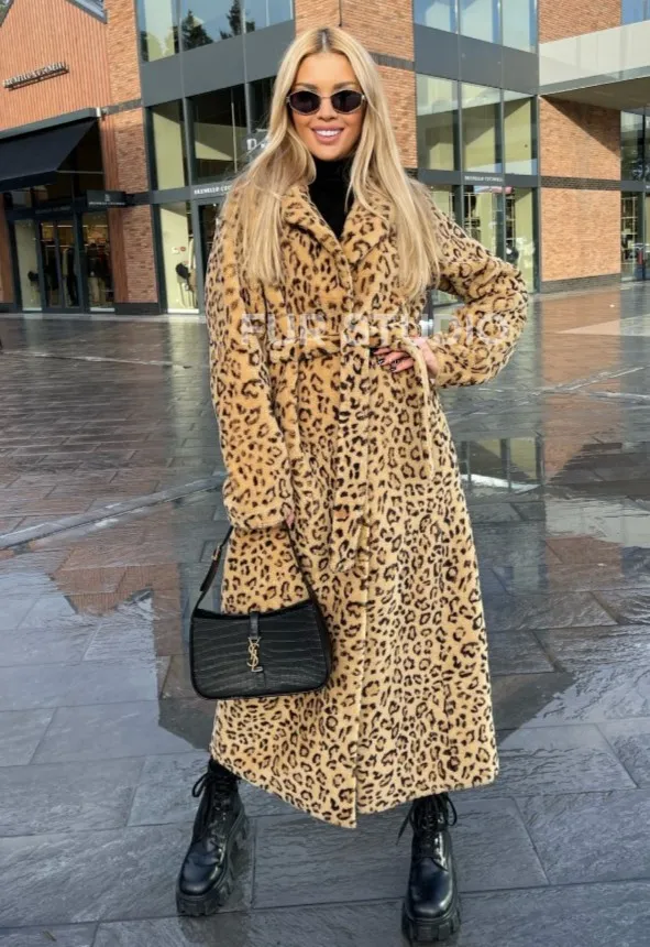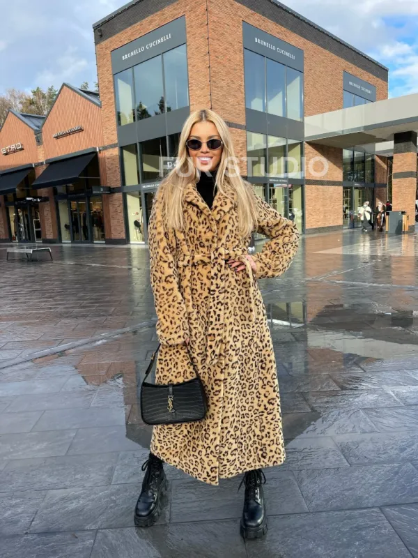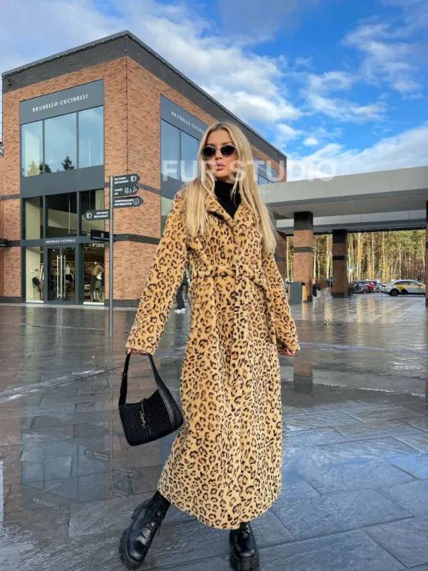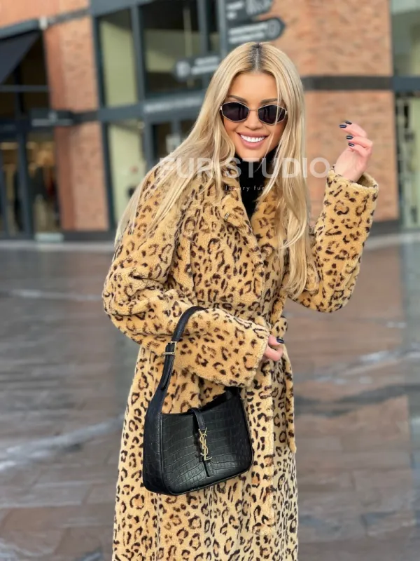 Пальто-шуба из натуральной шерсти под леопард 100260
