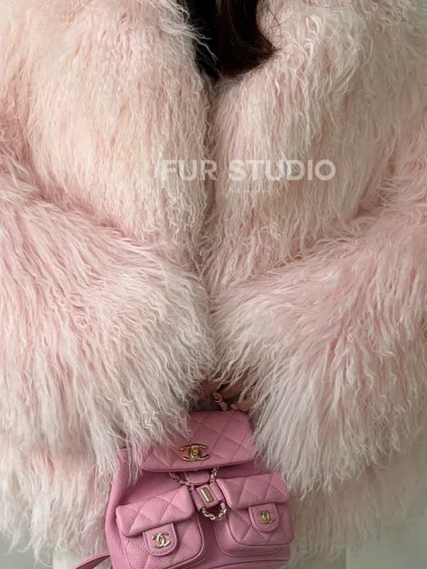 Шуба из меха ламы - цвет розовый 102813